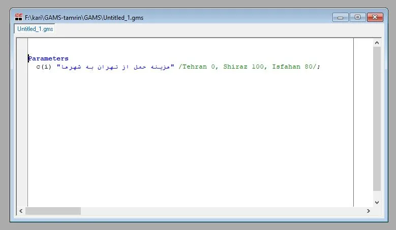 c(i) "هزینه حمل از تهران به شهرها" /Tehran 0, Shiraz 100, Isfahan 80/;