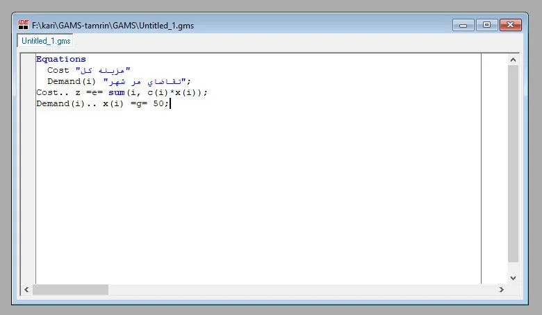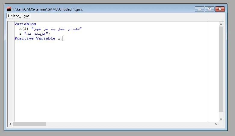 • متغیرها: مقادیر تصمیم‌گیری که GAMS محاسبه می‌کند.