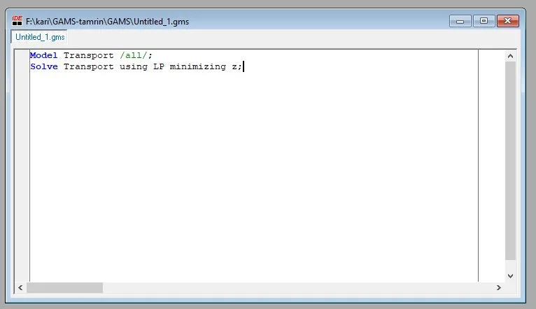 Transport نام مدل است و از نوع LP (برنامه‌ریزی خطی) حل می‌شود.